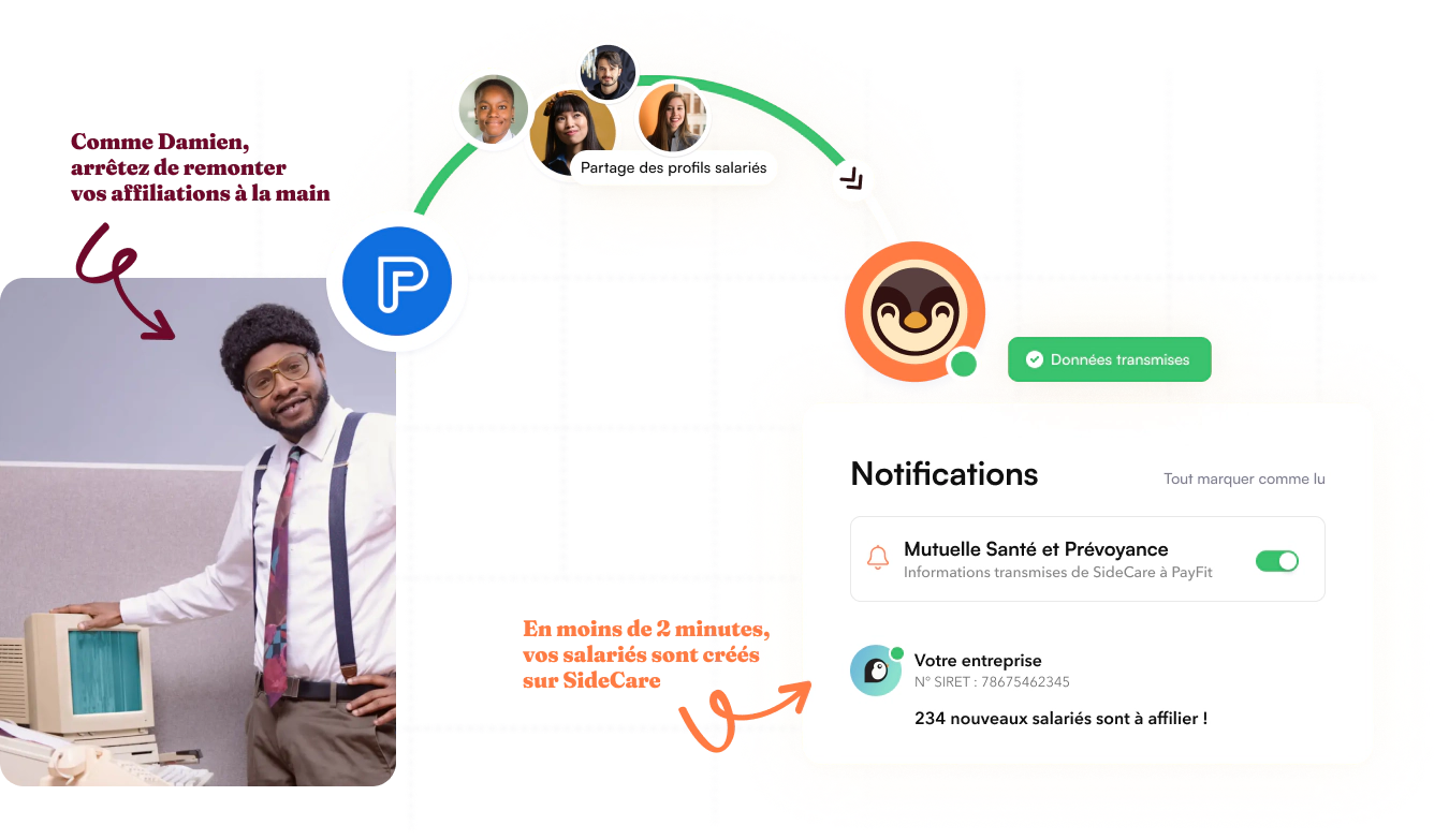 Associez votre compte SideCare à votre espace PayFit pour automatiser la gestion de vos contrats santé.